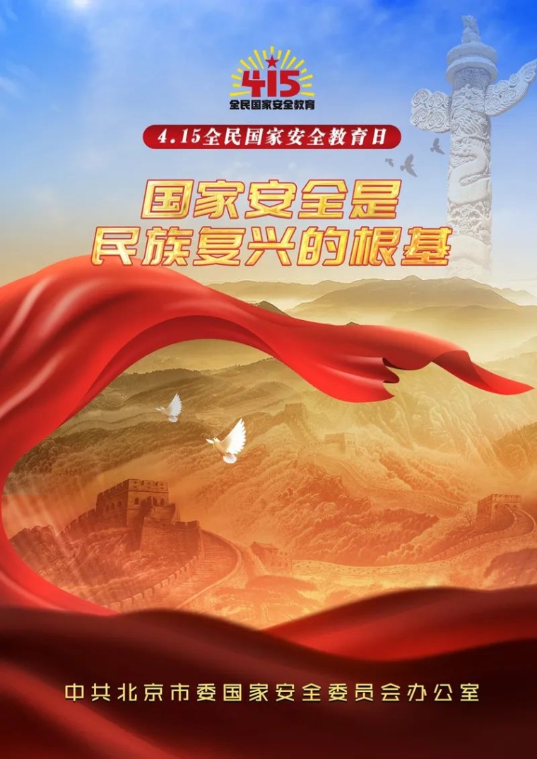 今年4月15日是我国第八个全民国家安全教育日,主题为“贯彻总体国家安全观,增强全民国家安全意识和素养,夯实以新安全格局保障新发展格局的社会基础”。近日,中共北京市委国家安全委员会办公室发布2023年第八个全民国家安全教育日主题海报。