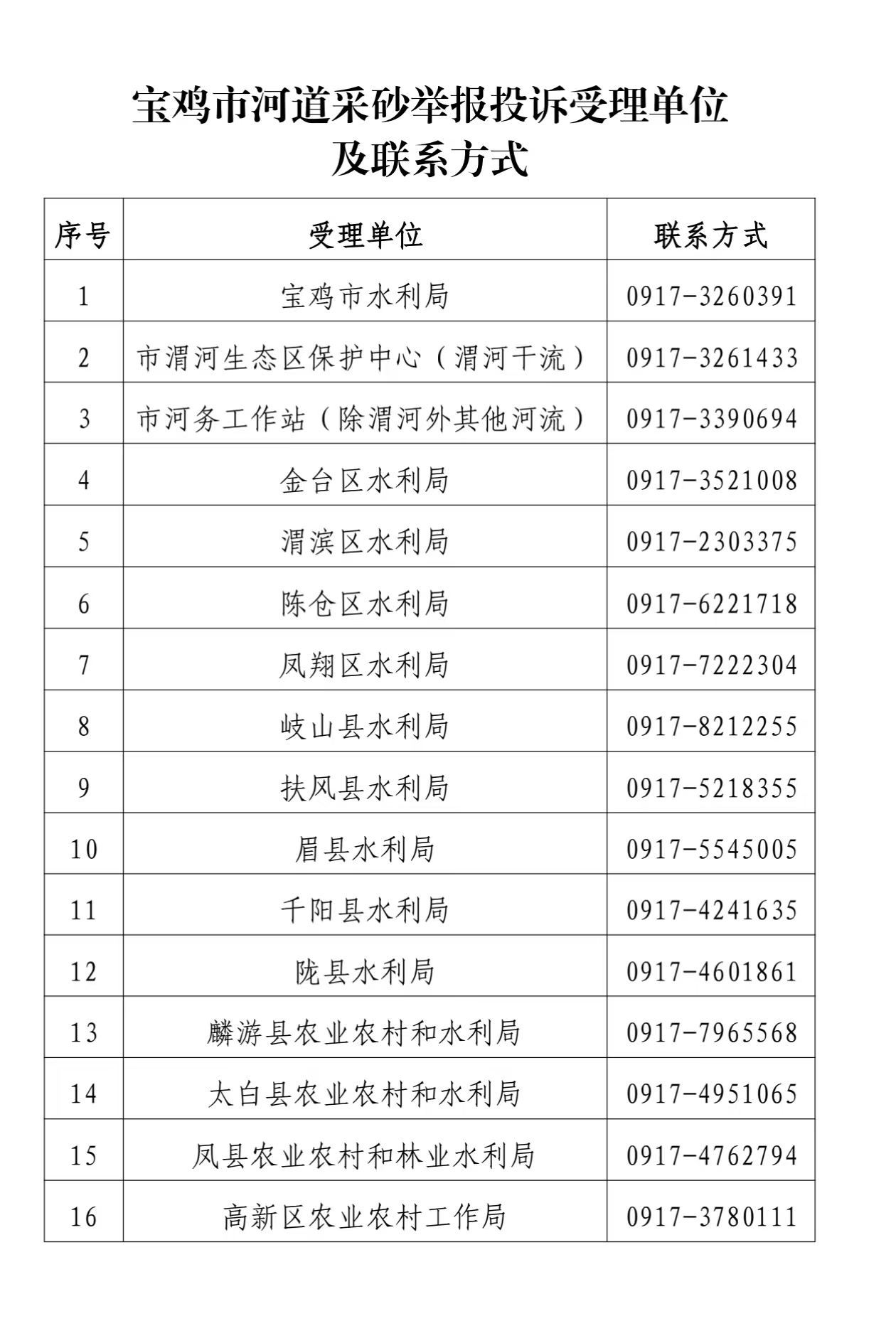 宝鸡市河道采砂举报投诉受理单位及举报电话.pdf